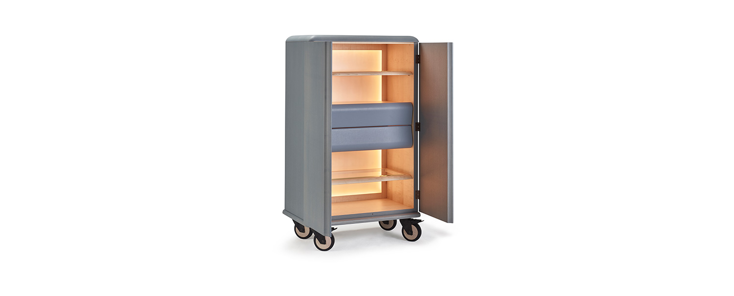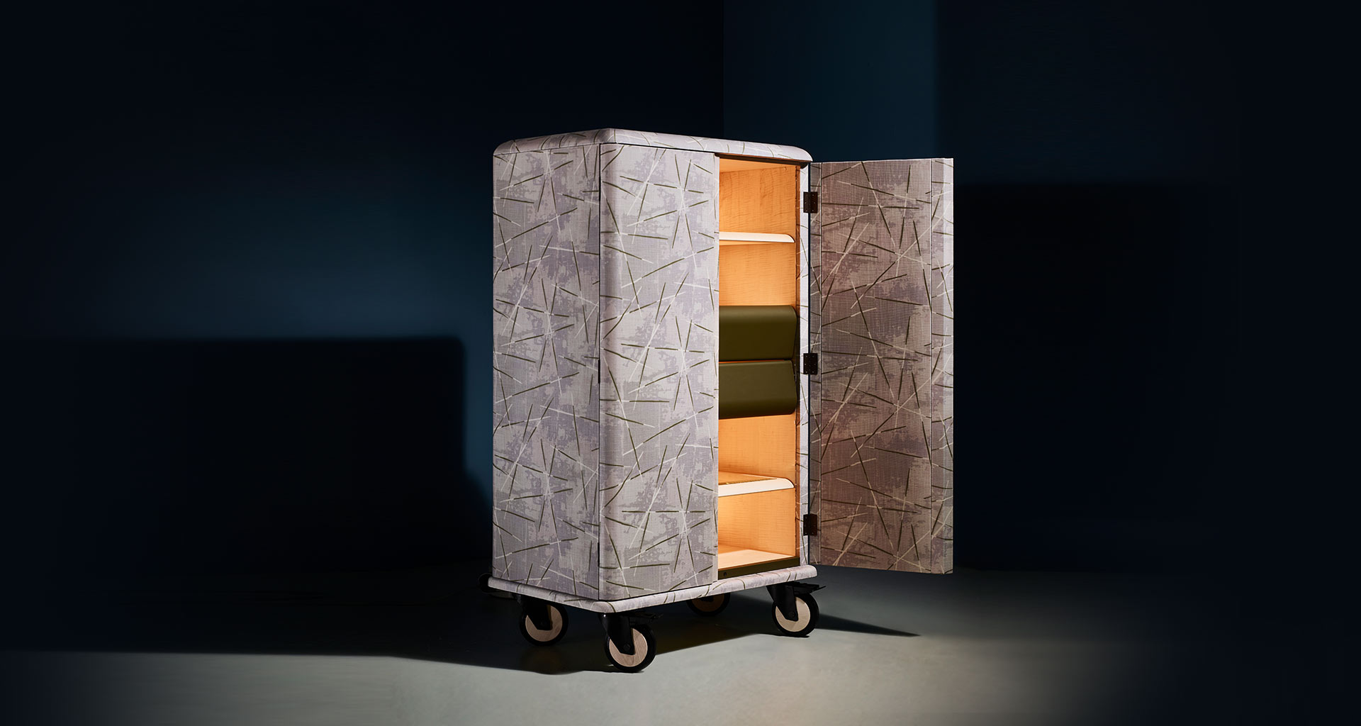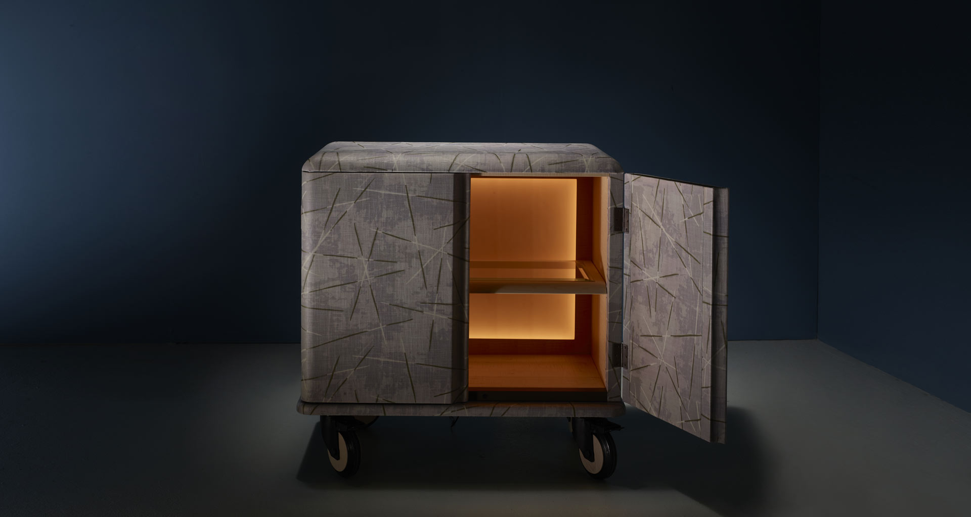 Inspired by the idea of travel, Grand Tour reflects the freedom of movement that defines both the chest of drawers and the cabinet. Equipped with practical wheels, both pieces can move effortlessly through the space, turning each shift into a small journey to be experienced within the home.
