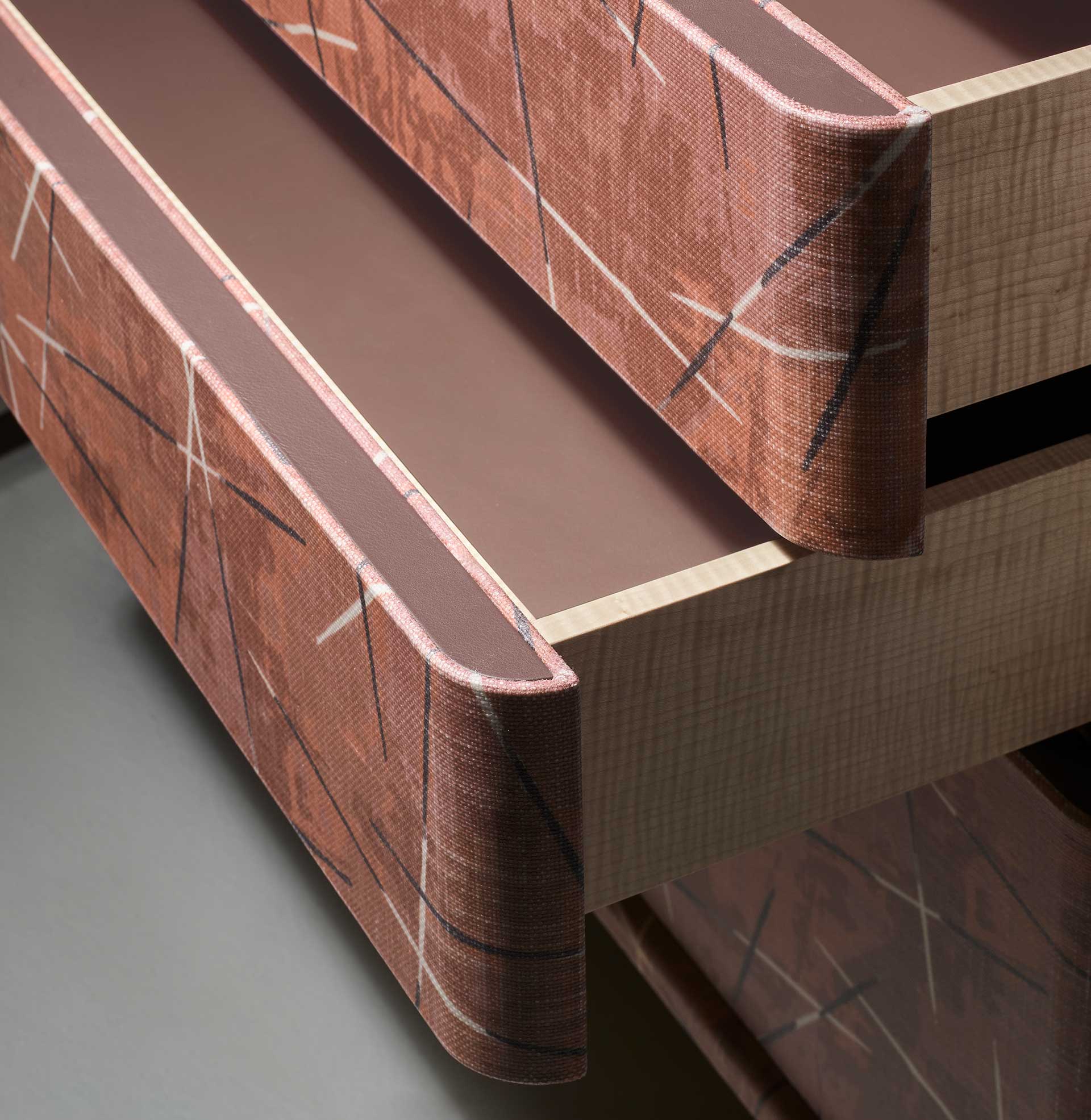 Gong青铜抽屉柜以织物或皮革包衬,请参见Promemoria产品目录 | Promemoria