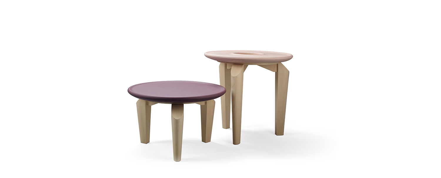 桌腿呈椭圆形,成为支撑点,上面放置着覆盖皮革的顶板,看起来就像是一个简单放置的托盘。但这些设计咖啡桌还有第二个版本,它们具有一个上层架,中间有一个孔,可以放置花瓶或其他小型珍贵物品作展示。
