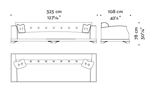 Mogador采用栎木底座,并以不可拆卸的织物或皮革包衬。哥特式风格沙发靠背和靠垫。